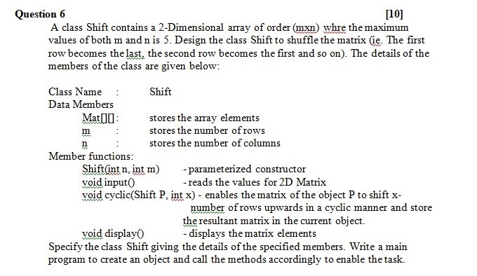 10. Design a class date which helps to get date operations. The details of the members of the class are given below :