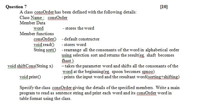 Specify the class Sort giving details of the constructor, void readSentence( ), String getWord(int), String arrange(wrd ), and void display( ). Define the main( ) function to create an object and call the functions accordingly to enable the task.