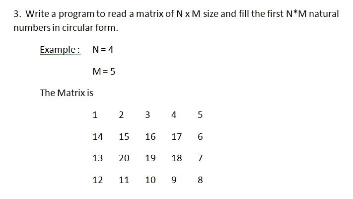 32. write a program to create an N x N square matrix and fill the first NxN natural numbers in circular form.